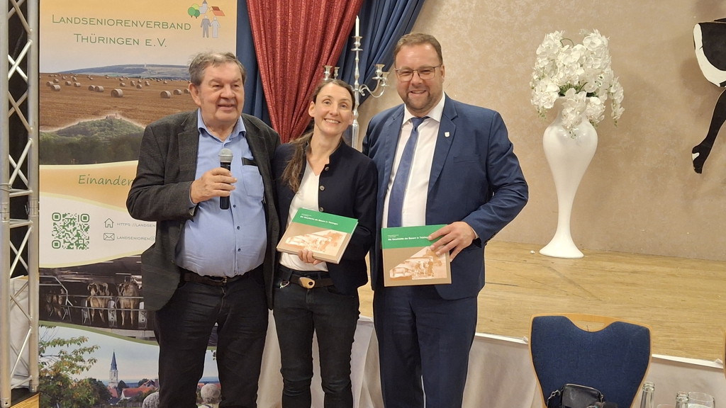 Der Landseniorenverband Thüringen e.V. hat das Buch „Die Geschichte der Bauern in Thüringen“ in einer 2. überarbeiteten Auflage herausgegeben. In dem Werk beschreiben die Autoren Hans-Joachim Lorenz und Dr. Bernd Unger wie sich die Landwirtschaft in Thüringen seit dem 18. Jahrhundert bis unmittelbar nach der Wiedervereinigung im gesellschaftlichen Zusammenhang entwickelt hat. Sowohl der Einfluss der Herzöge von Sachsen-Weimar auf die Gestaltung der Agrarverhältnisse, die Entwicklung der Agrartechnik, die Entstehung der Nutztierrassen als auch Durchführung und Auswirkungen der Bodenreform werden tiefgreifend beschrieben und mit historischen Dokumenten, Fotos und Tabellen unterlegt. Das Buch stellt einen Beitrag zur Agrargeschichte in Thüringen und im Osten Deutschlands dar. Es ist sowohl eine interessante Lektüre als auch ein Nachschlagewerk und kann über den Landseniorenverband Thüringen (landsenioren@landsenioren-th.de) bezogen werden.