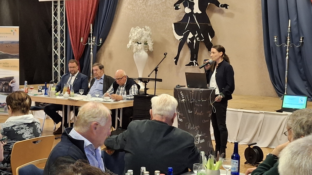 (08.08.2025) Der Saal in Reurieth war gut gefüllt, als der Landseniorenverband Südthüringen e.V. zu seiner diesjährigen Mitgliederversammlung eingeladen hatte. Auch die Gäste, Peggy Greiser, Landrätin Schmalkalden-Meiningen, Dirk Lindner, 1. Beigeordneter Landkreis Hildburghausen, Gerold Schmidt, Präsident des Landseniorenverbandes Thüringen e.V. und TBV-Vizepräsident Toralf Müller folgten aufmerksam dem Rechenschaftsbericht des Vorsitzenden, Albert Seifert. Seifert berichtete über die Arbeit des vergangenen Jahres und informierte, wie der Vorstand die Belange der Senioren zum Mittelpunkt seiner Arbeit gemacht hat. Er legte auch den Standpunkt des Vorstandes zur Situation in der Landwirtschaft und zu den Problemen in den Dörfern dar. Durch die gute Zusammenarbeit mit dem Seniorenbeirat Hildburghausen und dem Landesverband der Landsenioren wurden Probleme, die die Seniorinnen und Senioren beschäftigen, an die Politik und die zuständigen Behörden herangetragen. Beispielsweise standen Themen, wie der Ausbau der Windkraft, die Heizungsumstellung, gesundheitliche Versorgung, häusliche Pflege, Mobilität im ländlichen Raum, die Grundsteuerreform oder Fragen der Waldbewirtschaftung auf der Tagesordnung.