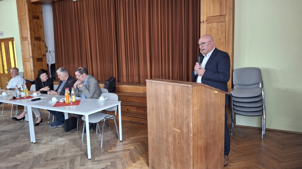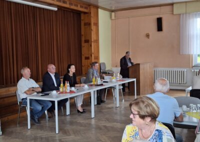 Die Probleme der Landwirtschaft legte Toralf Müller, Vorsitzender des Agrarunternehmens Pfersdorf und des Regionalbauernverbandes Südthüringen sowie Vizepräsident des Thüringer Bauernverbandes, dar. „Das Wetter treibt uns Sorgenfalte ins Gesicht“, meinte Müller bei seiner Schilderung zum Stand der Erntearbeiten. Gegenwärtig beschäftigen die Landwirte aber auch die für Viele unverständlichen und unsinnigen Auflagen der TA-Luft. Bis 1.12.2026 sollen danach alle Flüssigmistbehälter und Festmistlager abgedeckt werden. Hier hoffen die Landwirte auf eine Lösung gemeinsam mit den Landratsämtern, um die sächsische Lösung zu übernehmen. Auch die Kürzung der Ausgleichszulage für benachteiligte Gebiete und die Auswirkungen der Grundsteuerreform belaste die Landwirtschaftsbetriebe übermäßig.