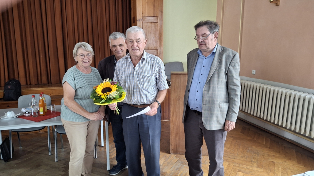 Herbert Kalnbach wurde mit der Ehrennadel der Deutschen Landsenioren ausgezeichnet. von links: Ilma Müller, Albert Seifert, Gerold Schmidt