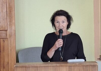 Der Direktor des Hennebergischen Museums Kloster Veßra, Ingo Weidig, nutzte die Landseniorenveranstaltung, um sich und die künftigen Projekte des Museums vorzustellen. Er bat darum, dass sich Landseniorinnen und Landsenioren bei den Projekten zur Geschichte der Landwirtschaft einbringen und ihre Erfahrungen und Erlebnisse darstellen. Eine Diskussionsrunde soll am 29.10.2024 zum Thema „3 Generationen, 2 Systeme, 1 Acker – Transformationsgeschichte(n) in Ostdeutschland“ stattfinden. WH